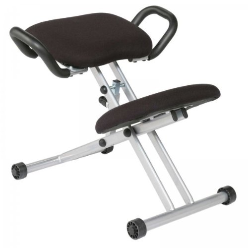 - Handgrips on this ergonomic kneeling chair allow you to get in and out of seating position easily.